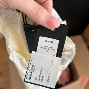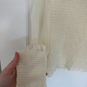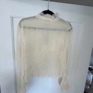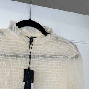 NWT Rag & Bone Kayden Sheer Smocked Ruffle Blouse Sz L in Light Dove