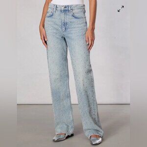 NWT Rag & Bone Shea Embellished High-Rise Straight-Leg Jeans Desirre Pearl Desi