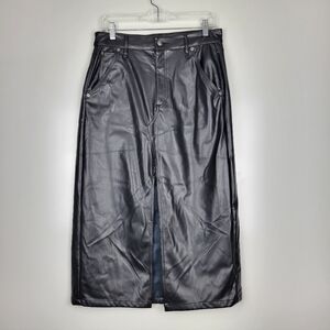 NWT Rag & Bone Sid Faux Leather Black Slit High Rise Skirt Size 28