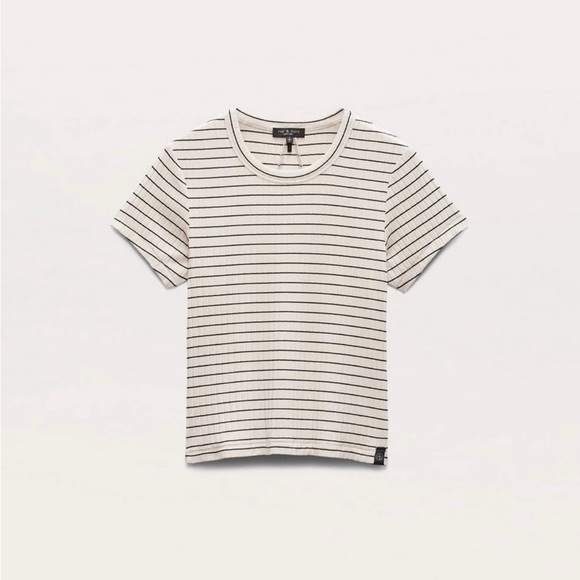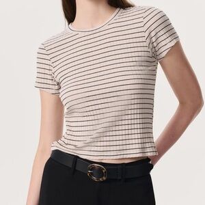 Stylish tee with black stripes. Soft fabric. Round neckline. Short sleeves.