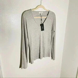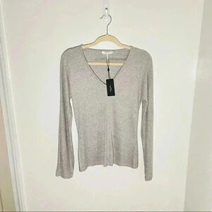 NWT Rag & Bone The Bias Rib Knit Long Sleeve V-neck Top In Light Grey