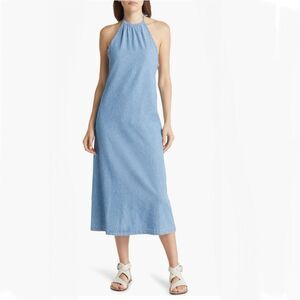 NWT Rag & Bone Zoe Halter Light Wash Denim Midi Dress Size M