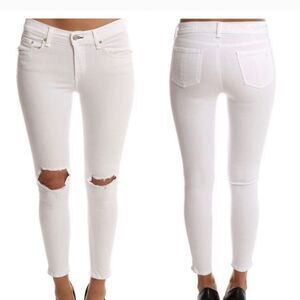 Classic Bright white Capri with intentionally distressed Holes in the knee area.