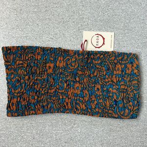 NWT Raga Bonfire Haze Bandeau Bando Smocked Strapless Tube Top Floral Paisley XS