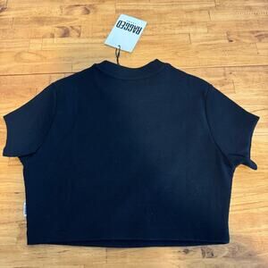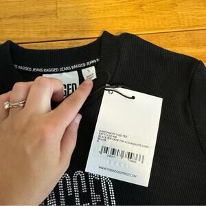 NWT Ragged Void Rhinestone Logo Baby Tee Crop Black Size Small