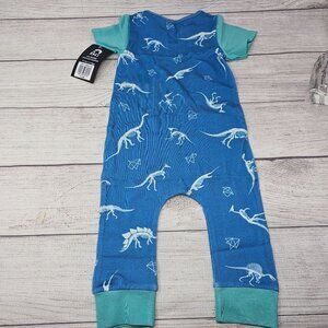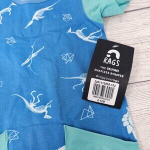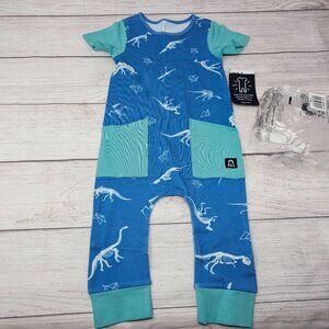 NWT Rags To Raches Baby Boy Blue Dino Pocket Romper Size 6-12 months