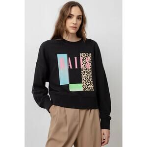 NWT Rails Alice Graphic Cotton Sweatshirt Long Sleeve Crewneck Pullover Black S