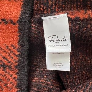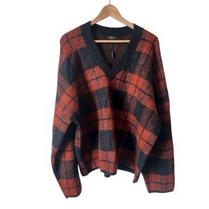 NWT Rails Colleen Rust Black Plaid Oversized V-Neck Sweater Size XL Reg. $268