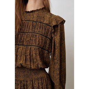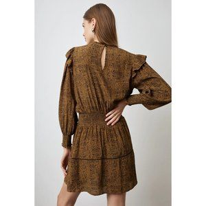 Effortlessly transition into the season with this feminine mini dress with its flattering smocked detailing. This dress features long puffed sleeves with ruffle detailing, a keyhole closure at back and lace inset details at chest.