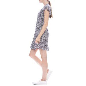 The Rails Leanne wrap dress is a versatile summer piece that's perfect for day-to-night styling. Cut from a luxurious linen and rayon blend, this lightweight mini dress has a functional wrap style tie fastening and features short flutter sleeves and a flounce bottom hem. Finished with a cute gingham print and tonal polka dot details, this chic dress looks great teamed with heeled sandals.