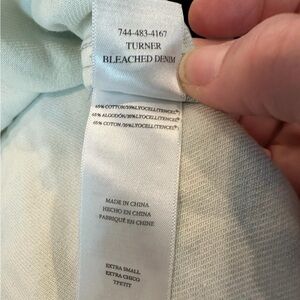 The Rails Turner Y2K Bleached Denim Jacket in Women's Size XS features a distressed 90's faded look, perfect for a casual and stylish outfit. Made from denim with fringe, button, and embroidered accents, this mid-length jacket with a snap closure and pockets is suitable for all seasons. The breathable cotton lining and regular fit make it comfortable and fashionable for summer, fall, and spring. The limited edition design with a grunge, classic, 90s, and retro theme adds a trendy touch to your wardrobe.