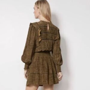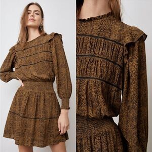 NWT Rails Faren Long Sleeve Ruffle Mini Dress In Sepia Python Size Medium