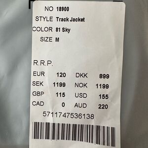 NWT Rains Unisex Track Jacket - Color Sky Blue Lightweight Zipper Closure Size M