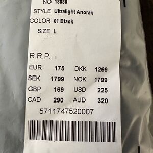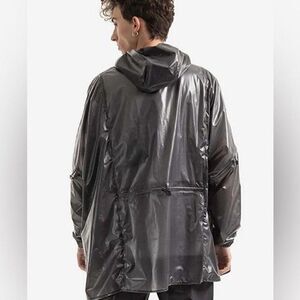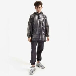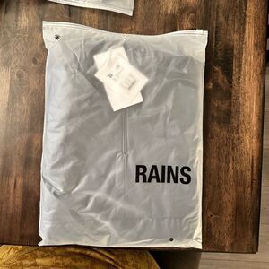 NWT Rains Unisex Ultra Light Anorak Black Raincoat - Built in Hood - Size L