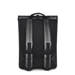 Rolltop Rucksack is cut in Rains' signature waterproof PU fabric, engineered for carrying strength, durability, and a smooth feel.