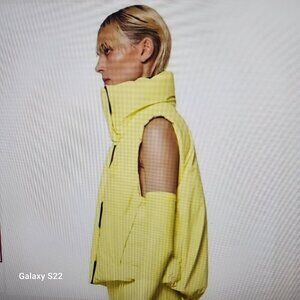 NWT Rains Loop Vest In Color Straw (yellow) Size Medium. Introducing the Rains Loop Vest, a must-have addition to your outerwear collection. This stylish vest in straw color features ultrasonically welded seams, concealed fleece-lined side pockets, and an internal chest pocket for convenience. The zipper closure and cinchable waist ensures a secure fit, while the 100% polyester construction with polyurethane coating provides durability and protection from the elements. Stay warm and stylish with the insulated 100% polyester lining, all while enjoying the quality of an imported Rains product.