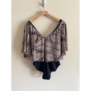 NWT Raisins Curve One Piece Slimming Swimsuit Black Blue 14W Stingray MSRP $108