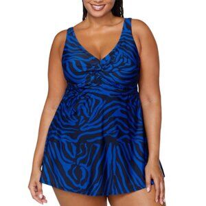 NWT Raisins Curve Trendy Plus Size Lucia Tummy-Control Swimdress - Navy 18W