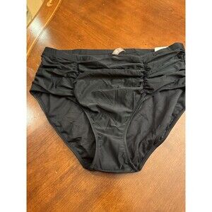 The NWT Raisins Curve Tummy Thinner waist bikini bottoms in size 24W are a stylish and comfortable option for plus-size women. With a classic black color and bikini style, these swim bottoms are designed to flatter and support. The brand, Raisins, is known for its quality and attention to detail, making these bottoms a reliable choice for a flattering swimwear ensemble.