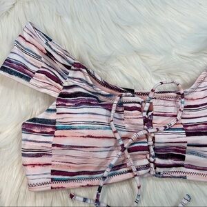 NWT and no flaws Lace up front Removable padding Size large Off shoulder design