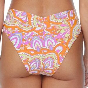 sleek front V-cut waistband and vibrant print brings retro-inspired vibes to Raisins' bikini bottoms, making them a perfect pick for your next pool party.