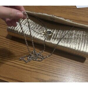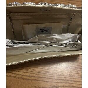NWT Raj Metallic Gold Evening Clutch Handbag With Metal Gemstone w/ Chain