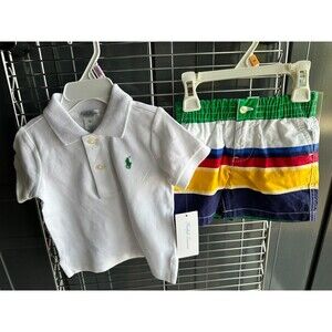 NWT Ralph Lauren BABY BOYS 9 mos, 6 MOS Mesh Polo Shirt & Polo Prepster shorts SET 2 PC