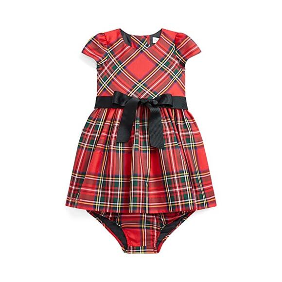 NWT Ralph Lauren Baby Girl's Plaid Print Fit & Flare Dress 2 Pec Set Size 6 M