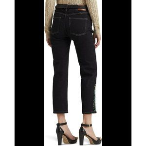 NWT Ralph Lauren Beaded High-Rise Straight Cropped Jeans in Black Rinse 28