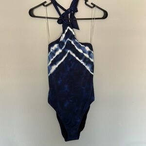 NWT Ralph Lauren Blue Shoreline Stripe Tie Dye one piece swimsuit. Women size 8.