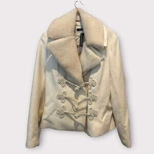 NWT Ralph Lauren Jacket Coat Wool SHEARLING Lamb Fur REMOVABLE Collar Sheepskin Fully Lined Women's Medium WINTER White /Off White Rare! Vintage