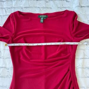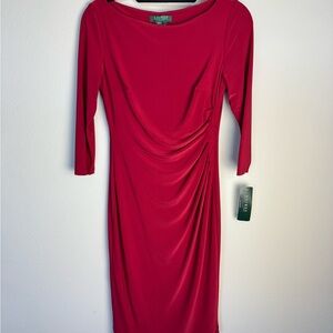 New with tag Ralph Lauren Dress Womens Red 3/4 Sleeve Back Zip Knee Length Lined size 2.
