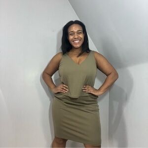 NWT Ralph Lauren Khaki Green Jersey Knit Comfortable Neutral Career Summer Dress