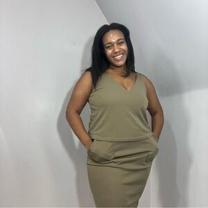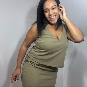NWT Lauren Ralph Lauren olive green business casual sheath midi dress