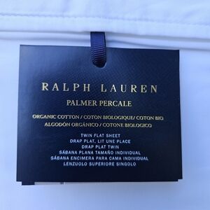 NWT Ralph Lauren Organic Cotton Palmer Percale white twin flat sheet navy piping