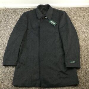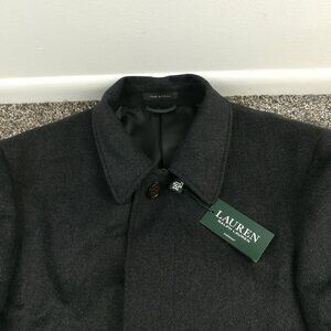 NWT Ralph Lauren Overcoat Tweed Wool Blend Herringbone Charcoal Gray 44R $350