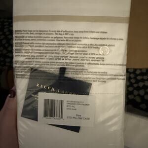 The NWT Ralph Lauren Palmer Percale Organic Standard Pillowcase in Sand Dune Tan White is a luxurious addition to any bedroom. Made from organic cotton, this pillowcase features a neutral color palette with a touch of elegance from the Ralph Lauren brand. The standard size of 21 x 32 inches ensures a comfortable fit for any bedroom setting, making it a stylish and sustainable choice for creating a cozy environment.
