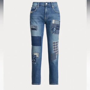 NWT Ralph Lauren Patchwork Stretch Relaxed Taper Denim Jeans Size 6