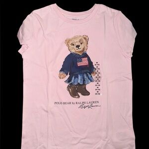 NWT Ralph Lauren Polo Bear t-shirt in a soft pink hue, size Medium (8-10)