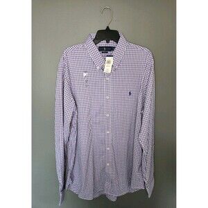 NWT Ralph Lauren Shirt Men's 2XL Purple Long Sleeve Plaid Button Classic Nylon