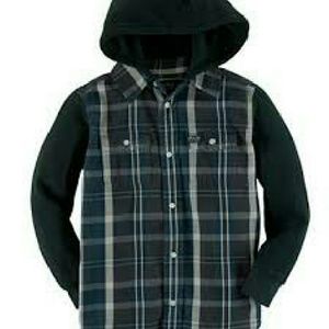 Ralph Lauren boys hooded button down shirt . Available in 3/3T. 100% cotton. New with Tag. Color blue green multi.