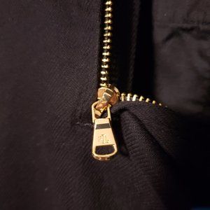 Black pants extra stretchy with good thick elastic band around waist. Front closure, uses two gold tone zippers. Two mock rear pockets. Versatile pants can be worn with top and boots or put on some heels and cute top and go out on a date or party.