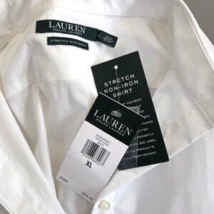 NWT Ralph Lauren White Blouse XL Button-Up Non-Iron Collar Long Sleeve Stretch