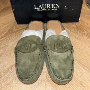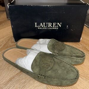 NWT Ralph Lauren Women’s Green Suede Brynn Mule Loafer Flats