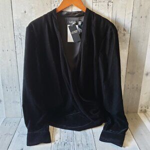 NWT - Ralph Lauren Women's Pleated Black Velvet Surplice Blouse – Size 18