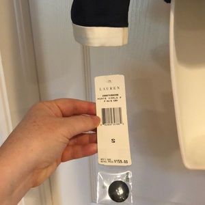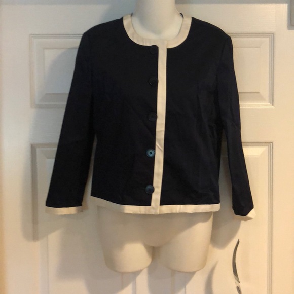 NWT Ralph Lauren Navy & Cream Monte Carlo button down light weight jacket. Has design name on buttons. Beautiful cream trim edges. Cotton & Elastane blend size small . Perfect to dress up or down.