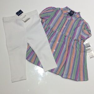 Super cute girls outfit. Multicolor dress with leggings. Retails for $55. 12M 29 1/2-31 in. 22/25 Lbs. 18M 31 1/2-33in. 25/27 Lbs. 👗💕👧🏻☺️ Ref #16