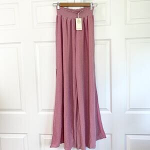 Brand new with tag! Ramy Brook Athena Glitter Shimmer Knit Wide Leg Palazzo Pant in Pink. Elastic waist, full length pant with side slits.
