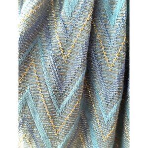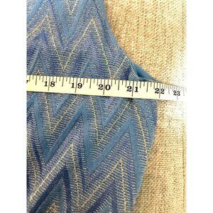 New without tags. Bought to wear on vacation but never wore it. Tags have been removed. A stylish mini dress featuring a blue chevron pattern accented with silver lurex. Its halter neck design, smocked waist, and back hook closure create a polished look. Crafted from a lightweight cotton blend, this dress offers comfort and elegance for warm-weather outings or semi-formal occasions. pit to pit 22"; length from shoulder to hem 37". Party, wedding, date night, flowy, feminine