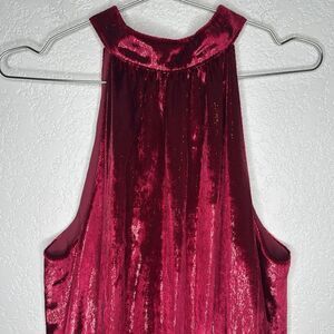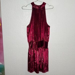 NWT Ramy Brook ELLIN Red Metallic Shimmer Velvet Halter Mini Dress Large